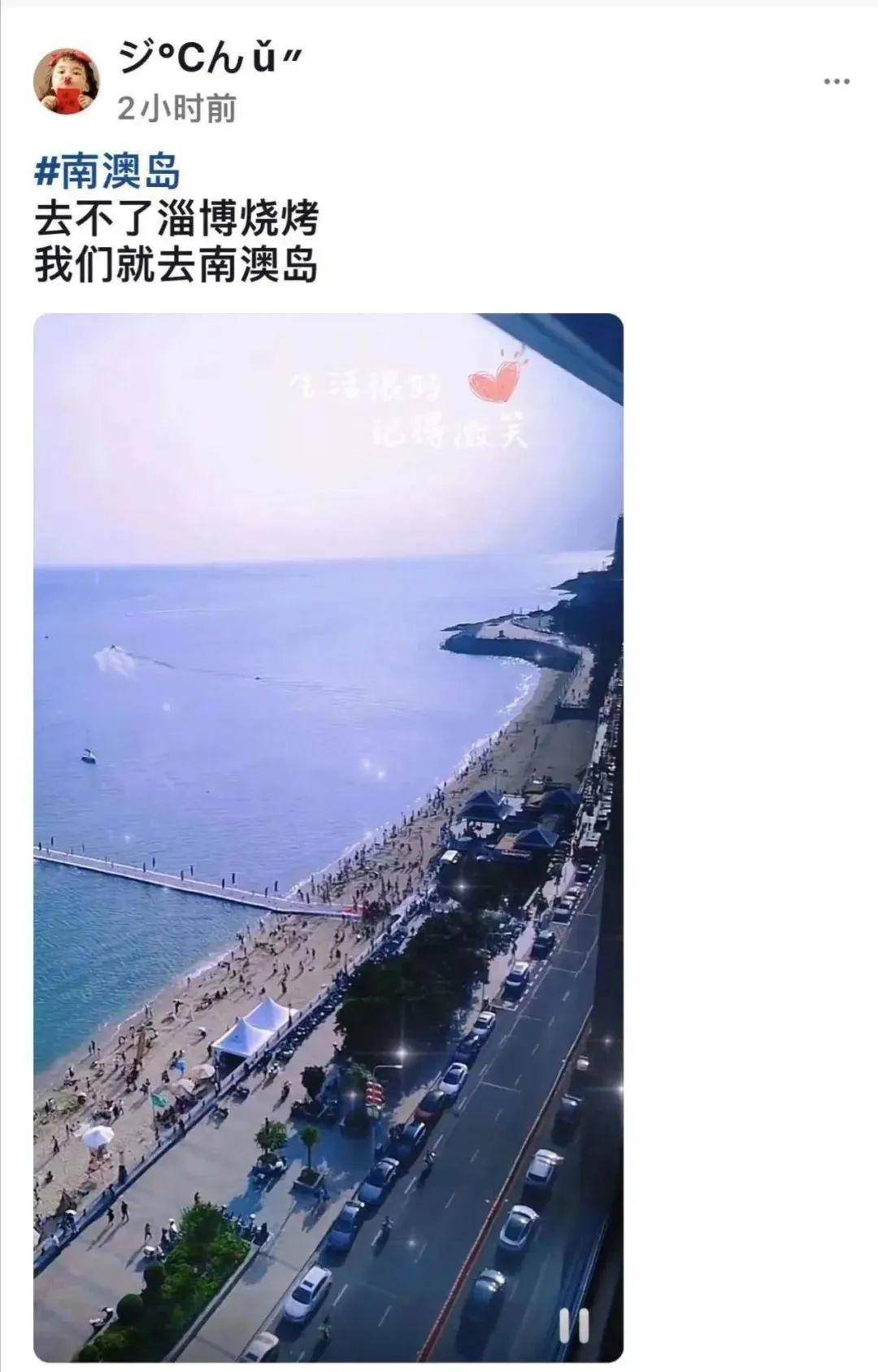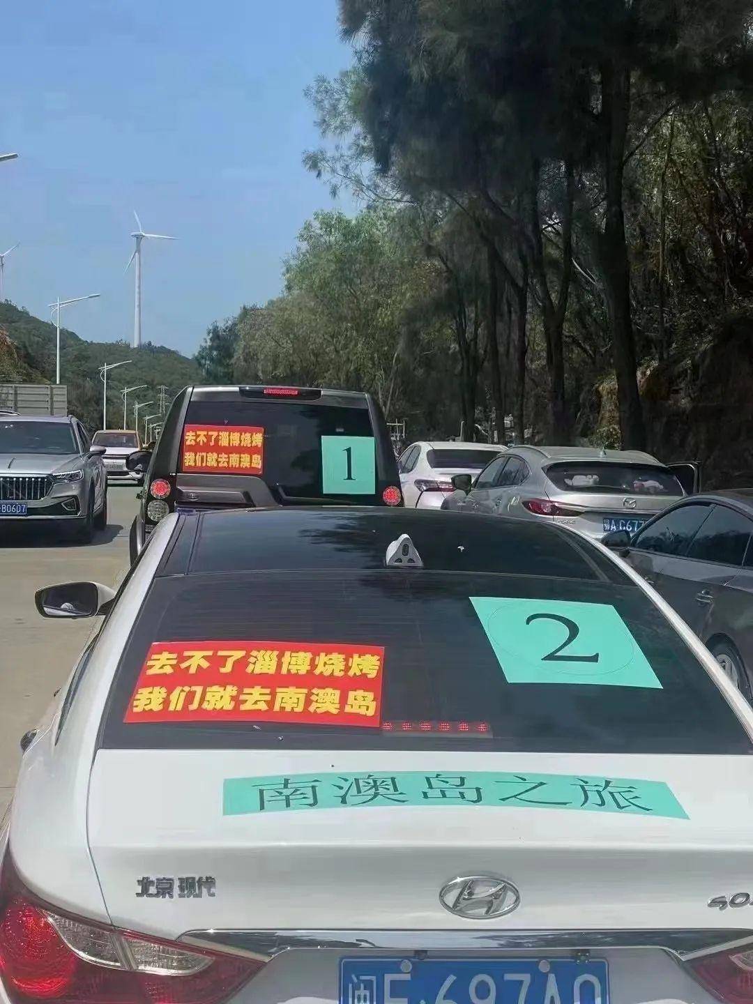 “五一”假期期间,后车窗上贴着“去不了淄博烧烤 我们就去南澳岛”的自驾车队在汕头当地社交平台上频频亮相。福建游客方女士一行,放弃了原先出游淄博的计划,选择来到汕头。