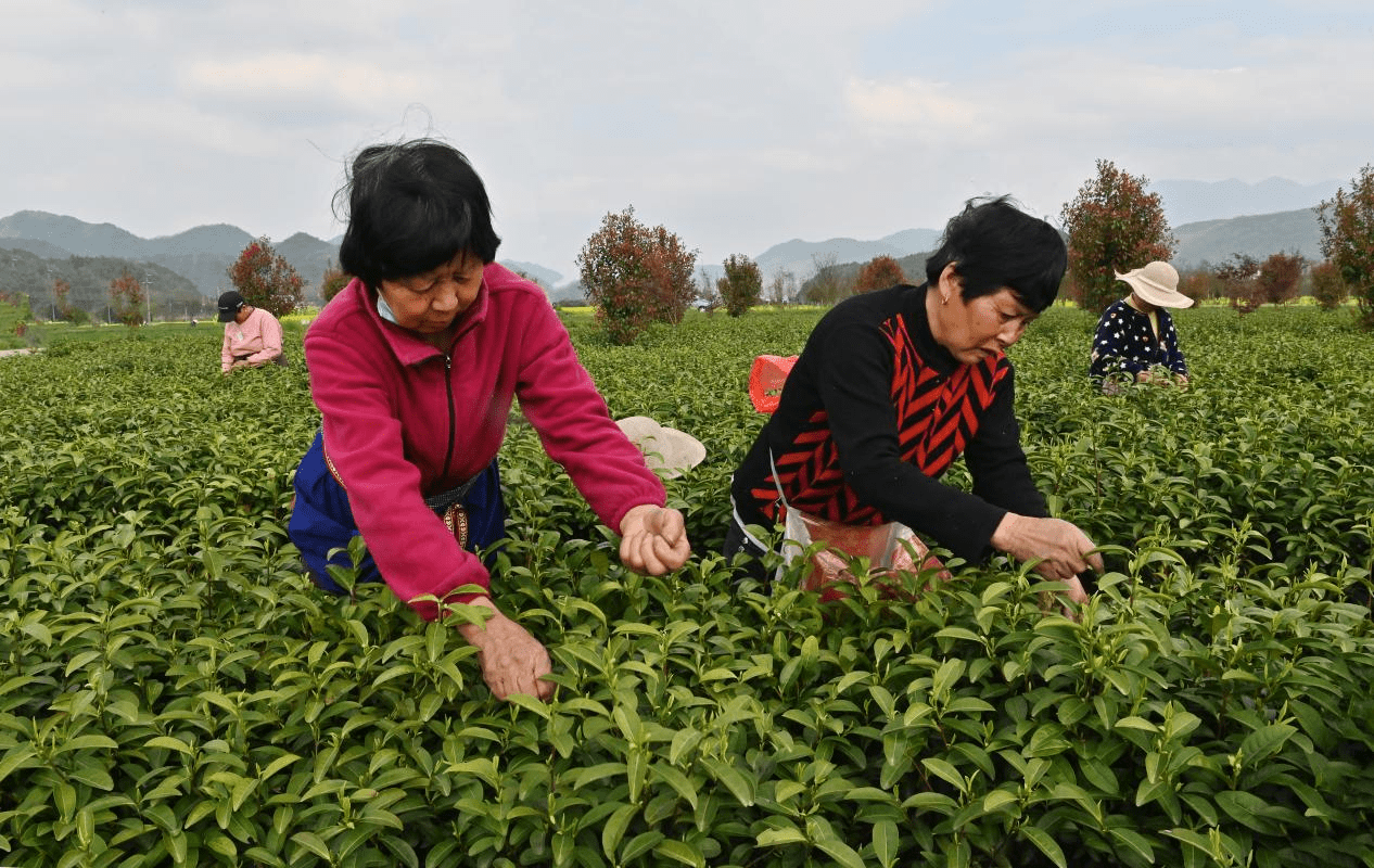 茶农们在茶园采摘春茶。新华社发(丁长杰 摄)