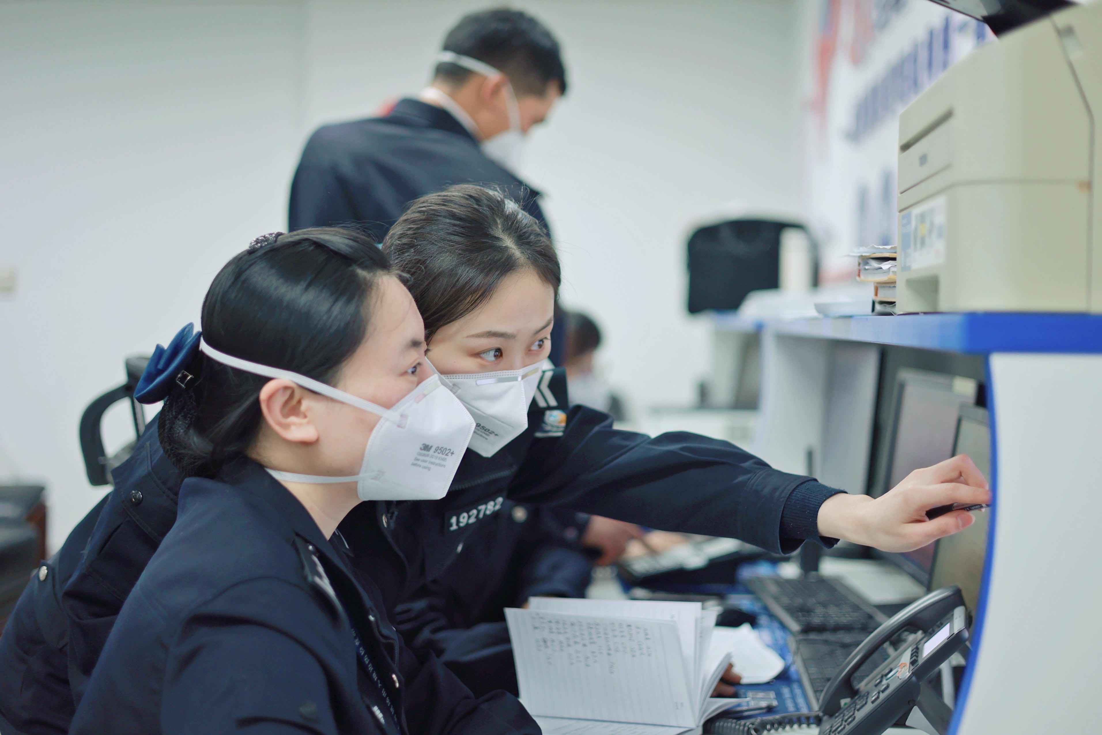 上海边检民警为旅客办理边检查验手续。上海边检供图