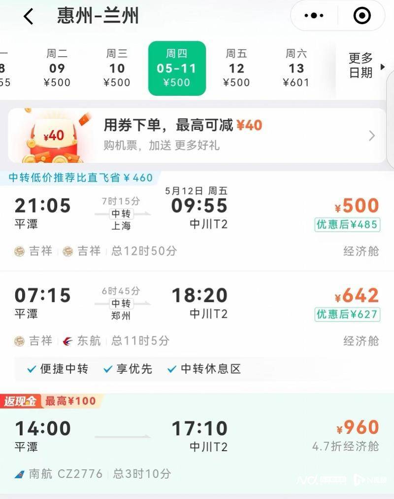 从第三方售票软件查询,惠州直飞兰州机票4.7折960元