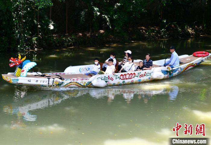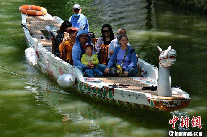 图为游客乘坐游乐龙舟观赏福州内河沿岸美景。 张斌 摄