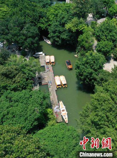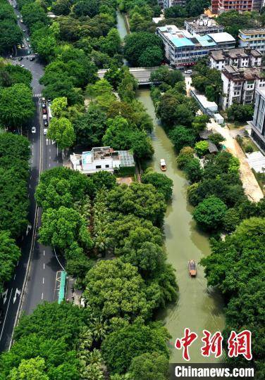 图为游船行驶在福州内河上。(无人机照片) 张斌 摄