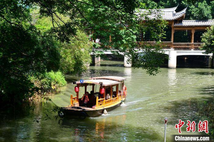 图为游客乘坐游乐龙舟通过航线“水上电梯”。 张斌 摄
