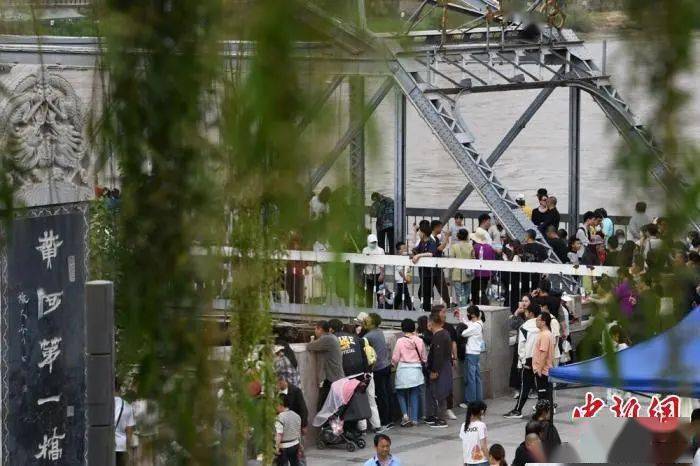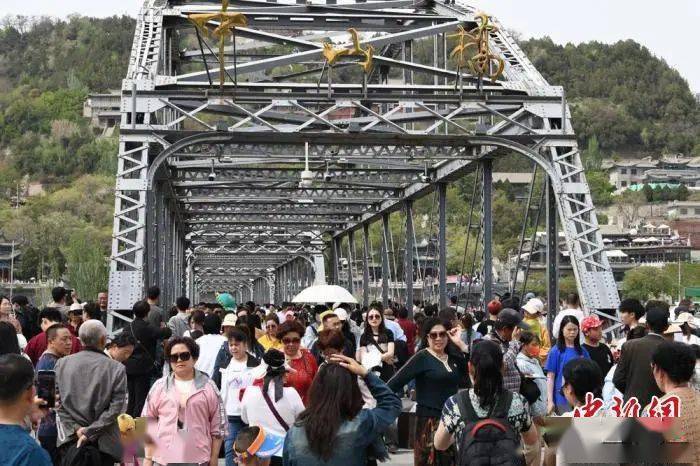 5月2日,“五一”假期第四天,游客纷纷来到兰州的著名景点“百年中山桥”打卡,感受“黄河第一桥”的魅力。中山桥来往的游客人潮涌动、络绎不绝、游人如织。
