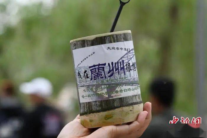 5月2日,游客来到兰州的著名景点“百年中山桥”打卡,感受“黄河第一桥”的魅力。图为竹筒奶茶。戴文昌 摄