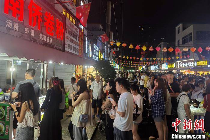 作为北海的“深夜食堂”,侨港小镇吸引了来自全国各地的游客,海滩上游人如织,侨港风情街里人声沸鼎、游客摩肩接踵,糖水、炒冰、炒螺、蟹仔粉、越南卷粉……各家商铺前排满了等待取餐的食客,生意火爆。