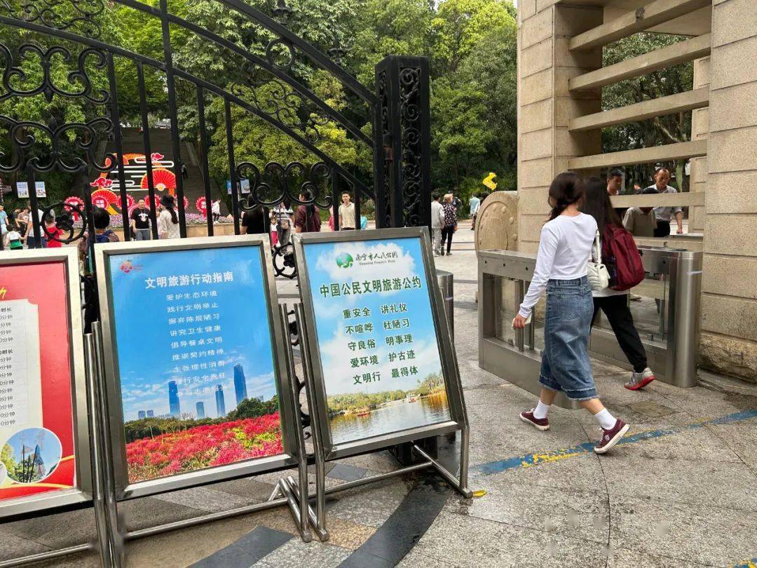 公益广告和文明旅游提示牌引导市民文明出游。记者 陈艳华 摄