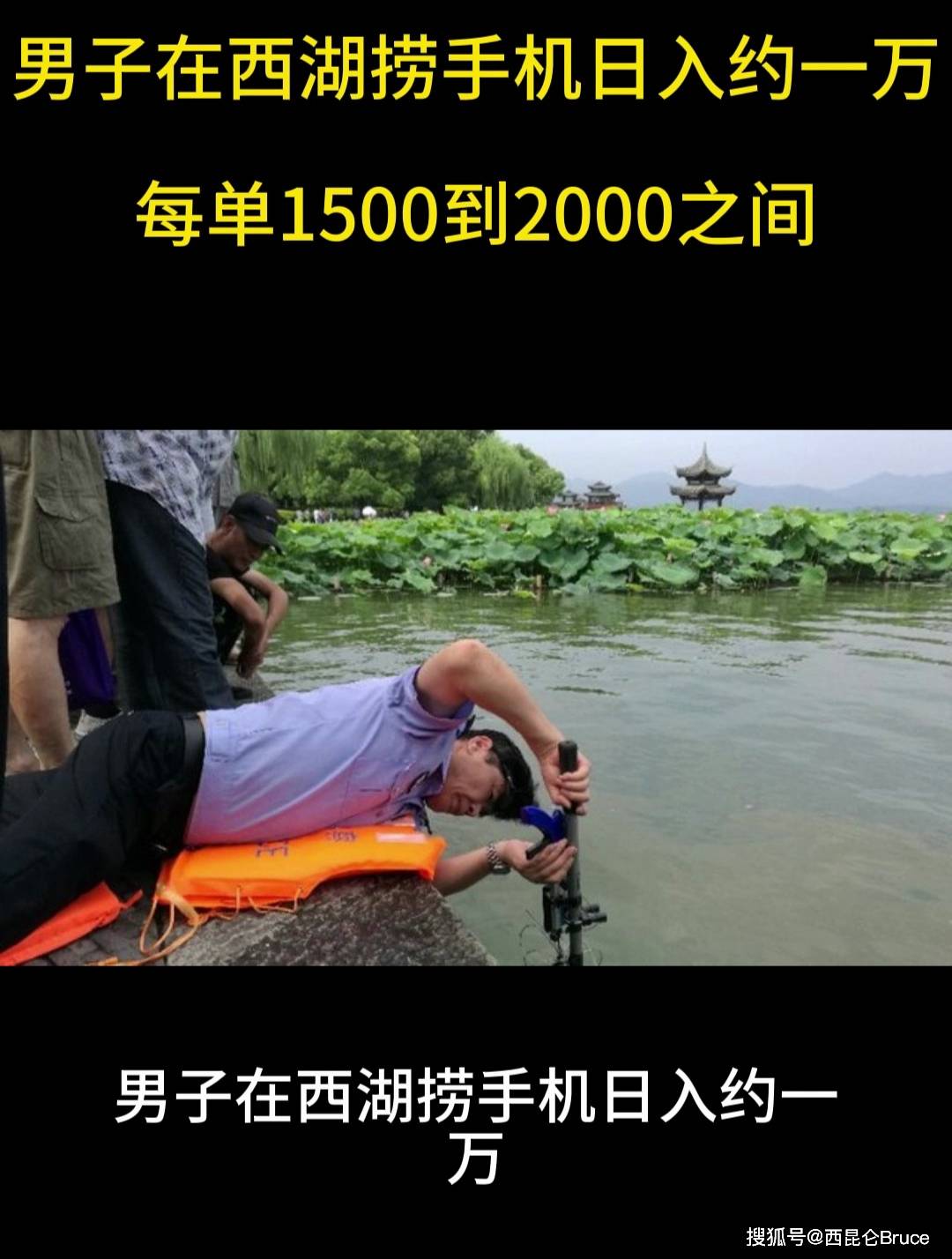 据一位小伙子介绍,他最近十来天,每天的日常工作,就是在杭州西湖为游客打捞手机和贵重物品,而且还非常稳定,基本上每天至少能接到3-4单订单,至于价格,每单定价在1500元到2000元不等。