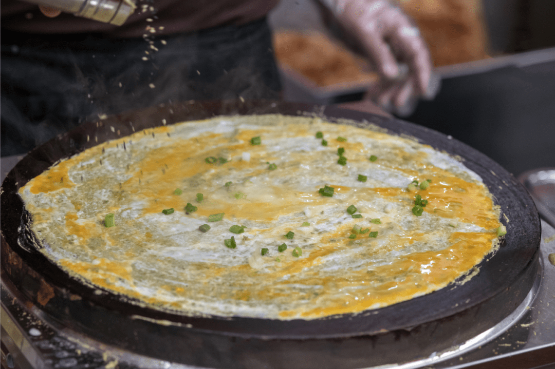 火爆互联网的天津早点煎饼果子。由于五一游客暴增,很多天津人自嘲,“已经吃不上早点了” / 图虫创意