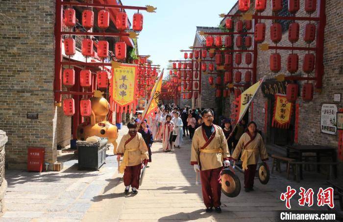 在司徒小镇景区,锣鼓、高跷秀、百米长龙等民俗展演轮番上阵,铿锵有力的锣鼓声、五彩斑斓的服饰、行云流水的表演为游客带来听觉和视觉的享受,引得大家纷纷拍照点赞。“第一次看到这样的民俗表演,感觉很有特色、很热闹。”河南游客刘璐兴致勃勃地说。
