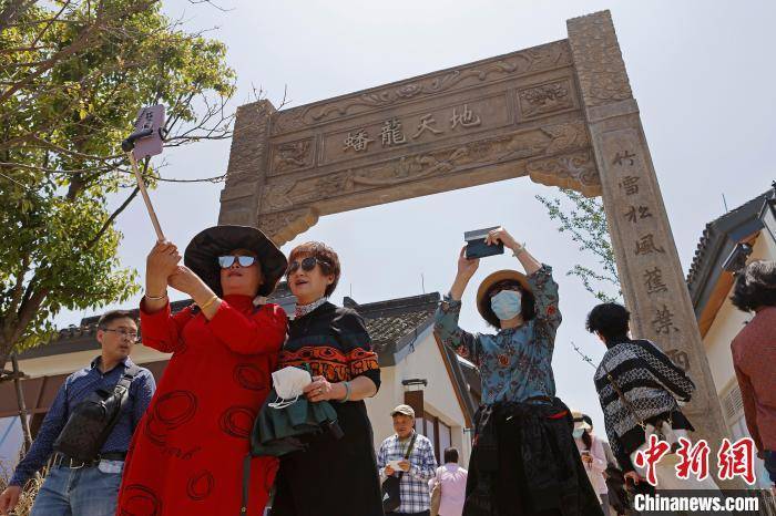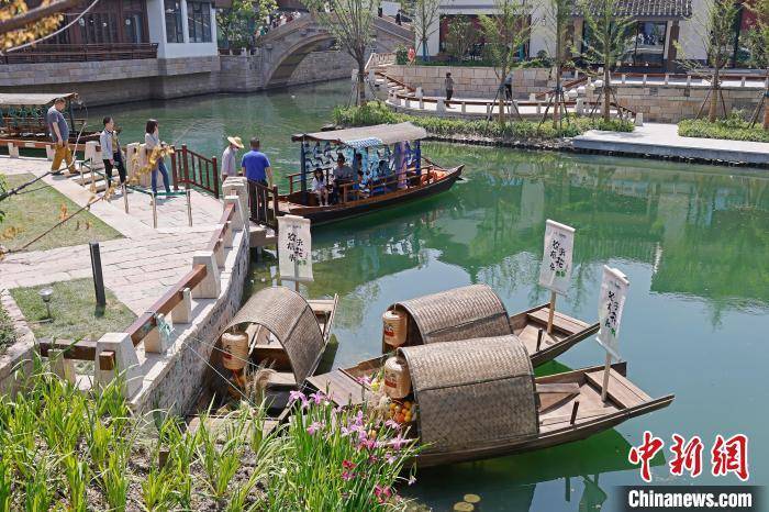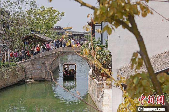 游客带着孩子在蟠龙天地感受江南水乡生活。 殷立勤 摄