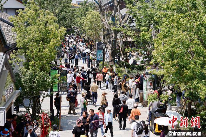 5月1日,游客带着孩子在上海蟠龙天地游玩。近日,上海首批完工“城中村”改造项目之一、长三角一体化示范区新消费示范项目蟠龙天地正式公开亮相。依托蟠龙古镇的历史底蕴,并蓄现代商业气息,蟠龙天地铸就江南水乡历史记忆与现代生活交织的风情休闲区,将致力成为镶嵌在虹桥国际开放枢纽上的“江南会客厅”“生活方式新地标”。