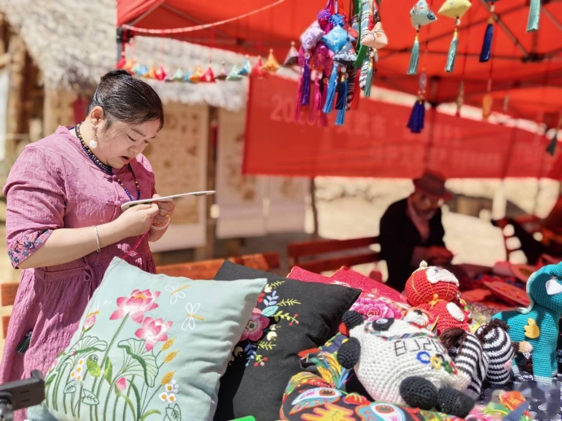 为进一步丰富景区活动内容,市文旅广局还开展了“激发非遗活力 创造美好生活”非遗进景区、戏曲进景区专场文艺演出、汉服巡游、《西游记》巡演、灵武农特产品展示等活动。10多名非遗代表性项目代表性传承人集中展示了灵州瓷、宣纸烙画、唐氏羊羔酒、马氏口弦、剪纸、刺绣、秦腔、鼎夏大缸酒等非遗项目,通过非遗与景区的碰撞,让市民游客得以近距离感受到特色文化遗产的魅力。
