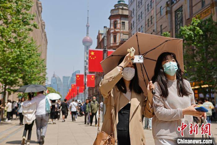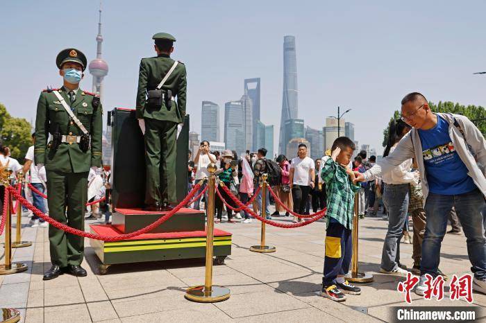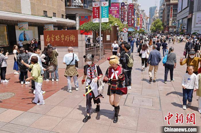 5月1日,游客在上海南京东路步行街上品赏美食,并在外滩滨水区与黄浦江两岸城市建筑合影。“五一”假期期间,外滩滨水区成为上海的热门旅游景点之一,累计总客流66.4万人次!创近3年以来新高。