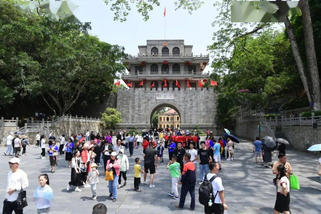 5月1日,游客在友谊关关楼前打卡拍照游玩。庞立坚 摄