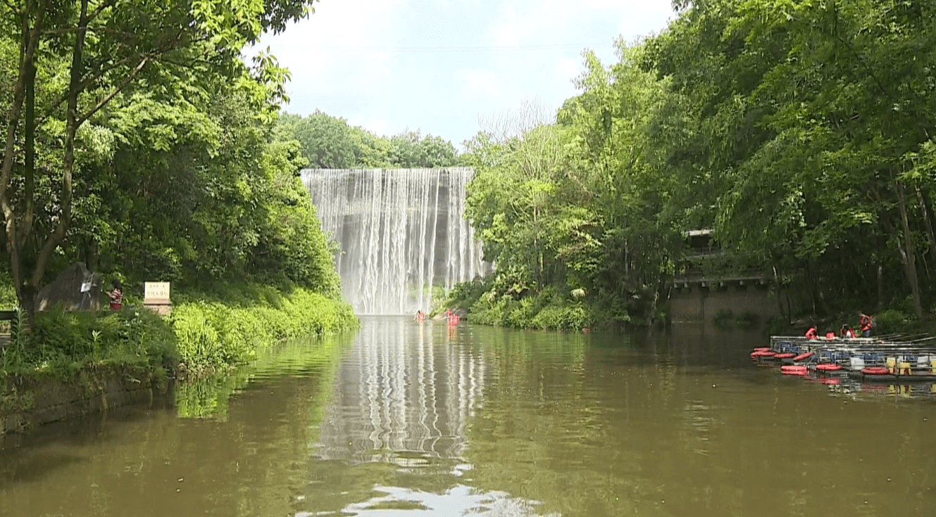 除了可以欣赏雄伟壮观的瀑布,节日期间,万州大瀑布景区还推出了栈道探险、水上竹筏等项 目,吸引了不少游客争相体验。