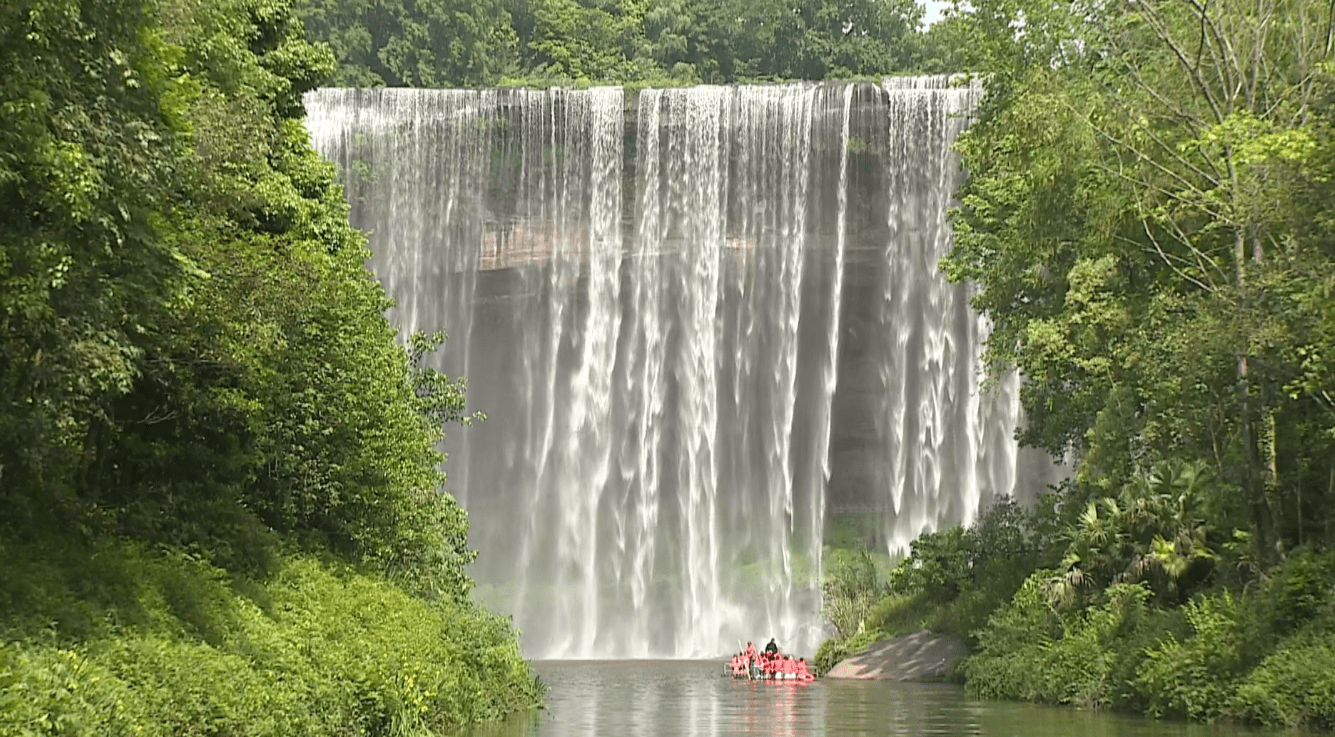 一走进万州大瀑布,游客就被雄伟壮观的瀑布吸引,亲身感受到“飞流直下三千尺,疑是银河落九天”的意境。大瀑布宽151米,高64.5米,瀑布飞泻直下,激起万朵水花, 形成蒙蒙雨雾,美不胜收。雄伟的瀑布、飞溅的水花、飘渺的水雾、迷人的风景,让游客们惊喜连连。