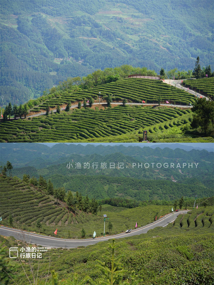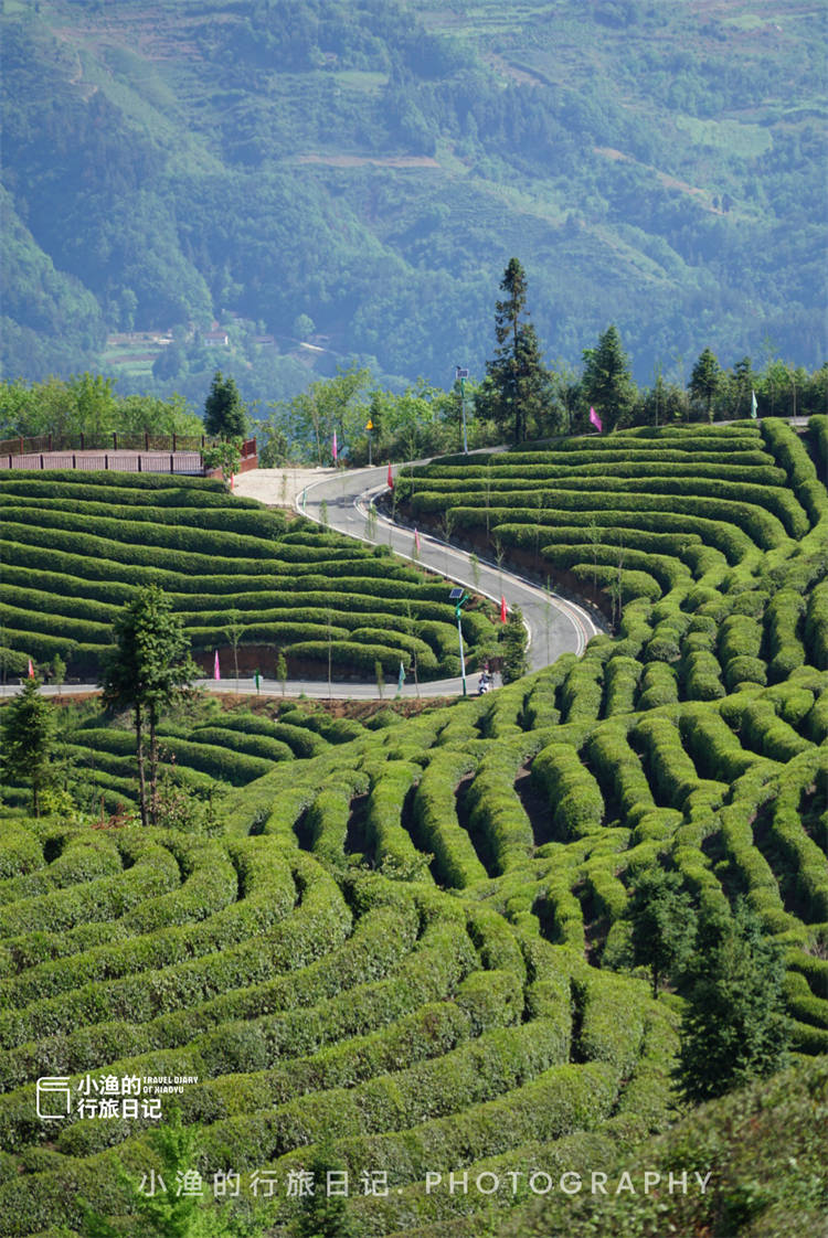 比如琼熙万亩生态茶园,这是一个海拔1200米的高山茶园,位于阜川镇小河庙村茅坡山。因为地势起伏很大,来到这里可以从不同角度欣赏茶园的美。