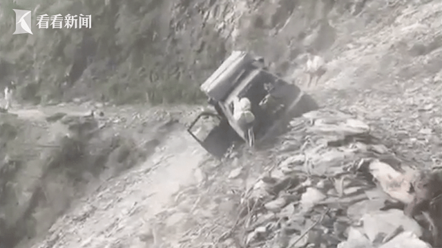 4月30日,有位游客开吉普车来露营要下山的时候,卡在了石路的陡坡处。他们一度拉车救援,不过整辆车还是坠落60米深的山谷,幸好人早已逃出了车外。