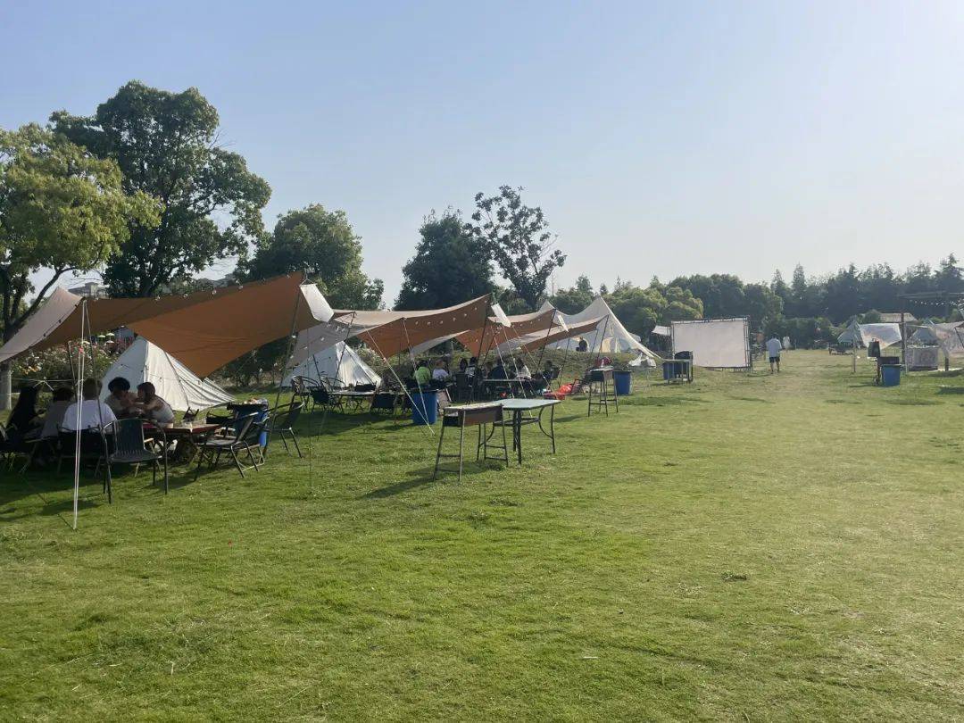 ▲游客在苏州市吴江区横扇街道近郊的江南·花伴湾景区露营。