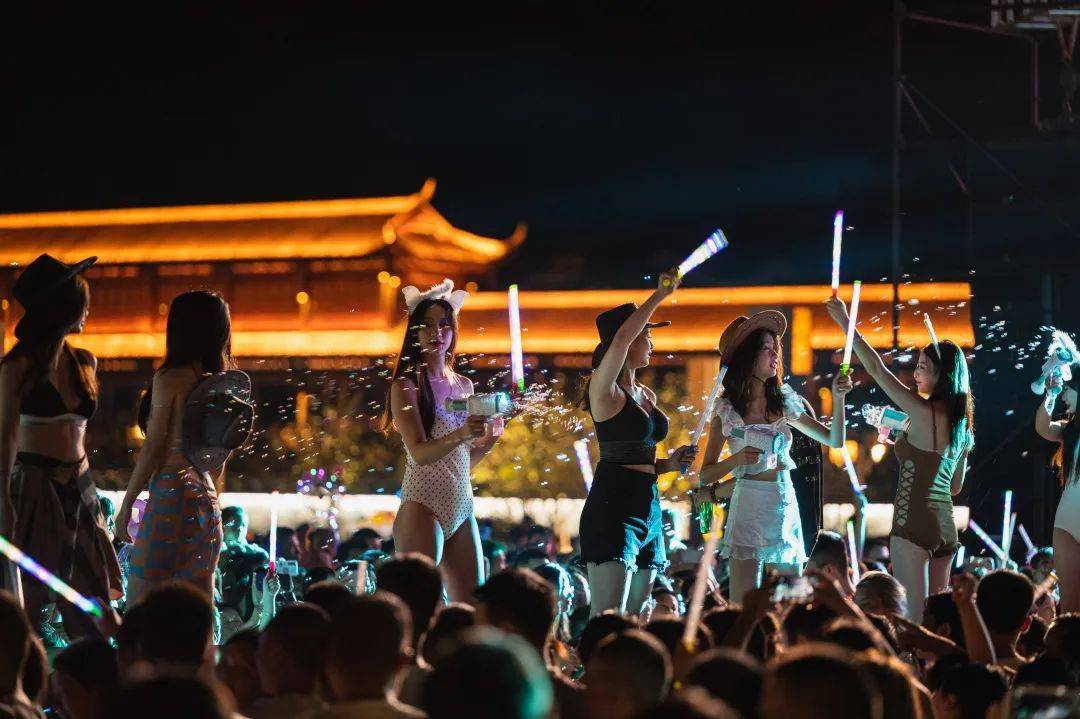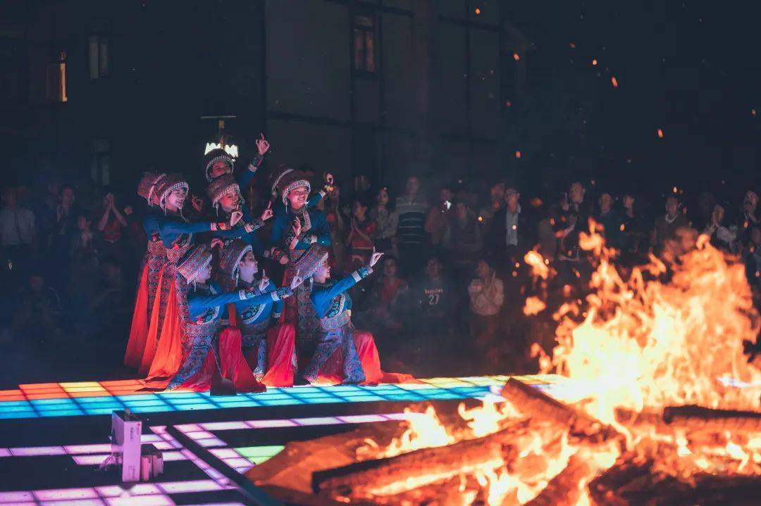 华灯初上,土家族姑娘热情邀请游客们伴着欢快的音乐,跳起豪情似火的舞蹈。