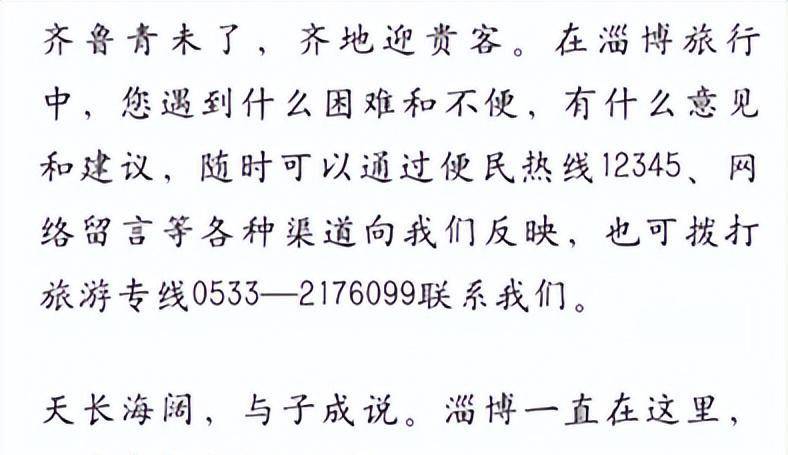 此段话锋一转,客流过载、酒店售罄,直接点出淄博当前的旅游热潮,建议游客错峰出游,避免扎堆,以提升旅游舒适度。充分体现出当地的“诚”,既是诚信,也是真诚,实际上也是一封提前发出的道歉信或提示信,如部分游客感觉体验不好,也是因为人流量过大造成的,我们已经提前提示了。
