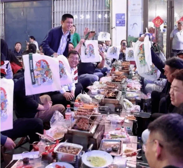 另外,还有其他地市文旅局长直接到淄博“揽客”,在烧烤摊前为游客赠送特产,并邀请游客“吃完烧烤”去其他地市“玩一玩”。