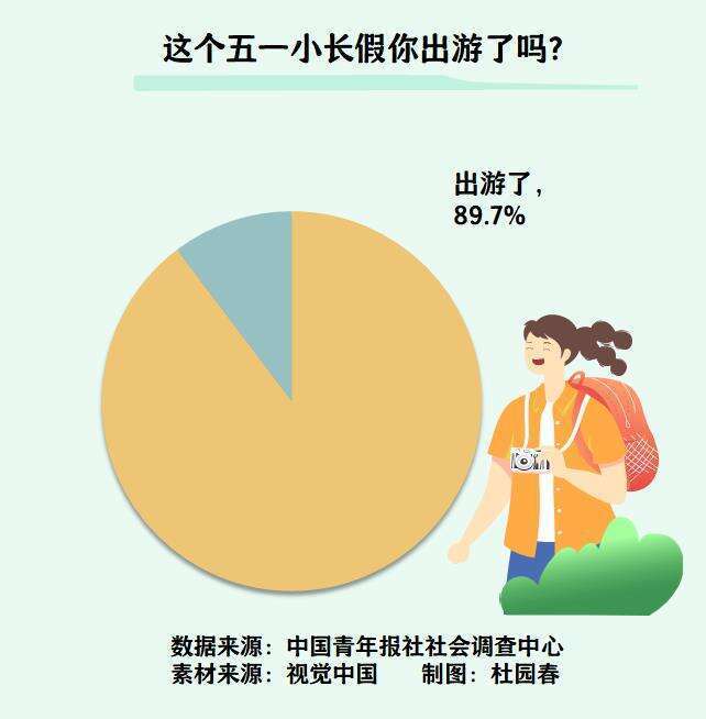 刚刚过去的五一小长假,人们的出游需求得到了充分释放,各地热门景区人流量高涨。中国青年报社社会调查中心联合问卷网(wenjuan.com),对2003名受访者进行的一项调查显示,这个五一小长假,89.7%的受访者都出游了,其中,省内游成为主流。