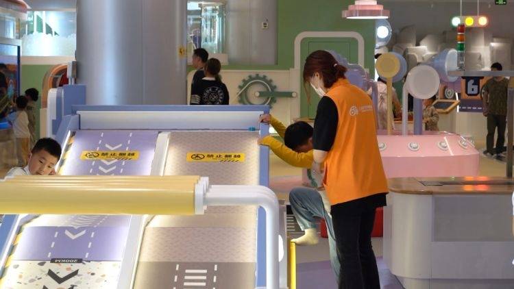 “小朋友注意安全!”看到有孩子在滑滑梯上反向倒爬,志愿者吴佳妮赶紧上前一步阻止。“‘五一’期间,来这里游玩的小朋友很多,如果他们有危险攀爬的动作,我们就会及时阻止,希望给他们营造一个安全的旅游环境。”吴佳妮说道。