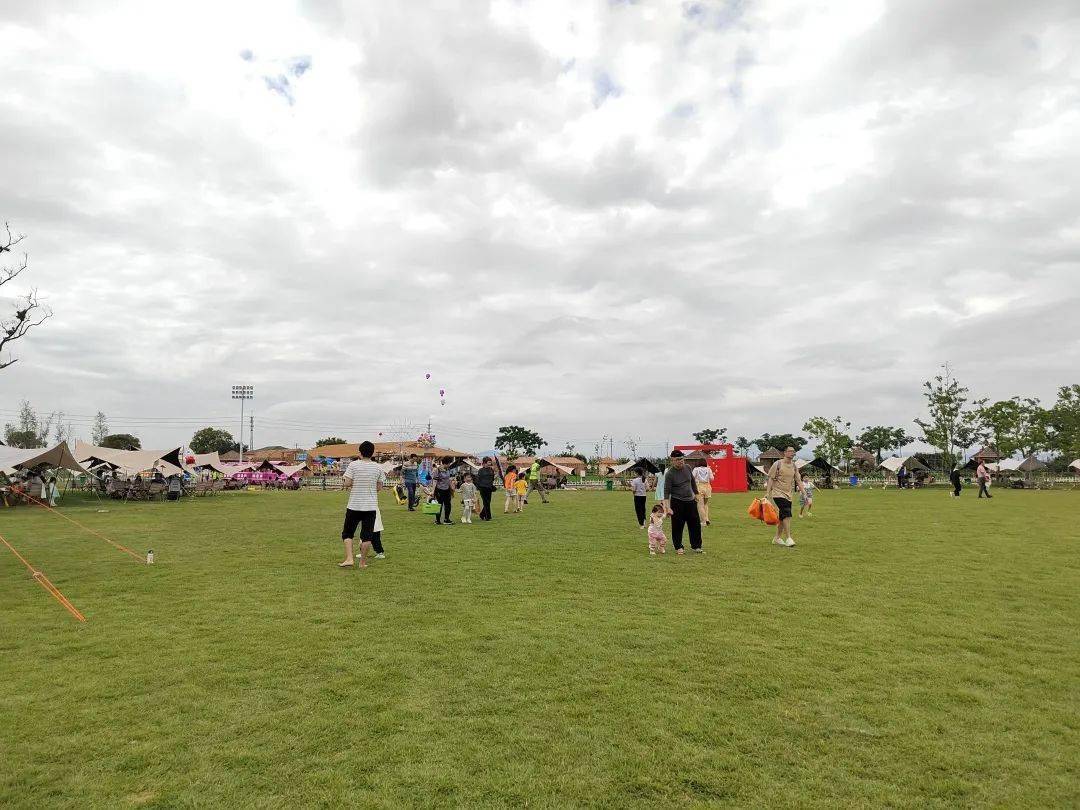 在和美·花海生态园,蓝天白云与绿色草地交相辉映,孩子们在草地上放风筝、嬉戏玩耍,大人们在帐篷里休闲娱乐,一片其乐融融的景象。和美·花海生态园作为“'暴风'能量卡,澄海打卡游”活动的打卡点之一,吸引了许多游客前来游玩拍照。