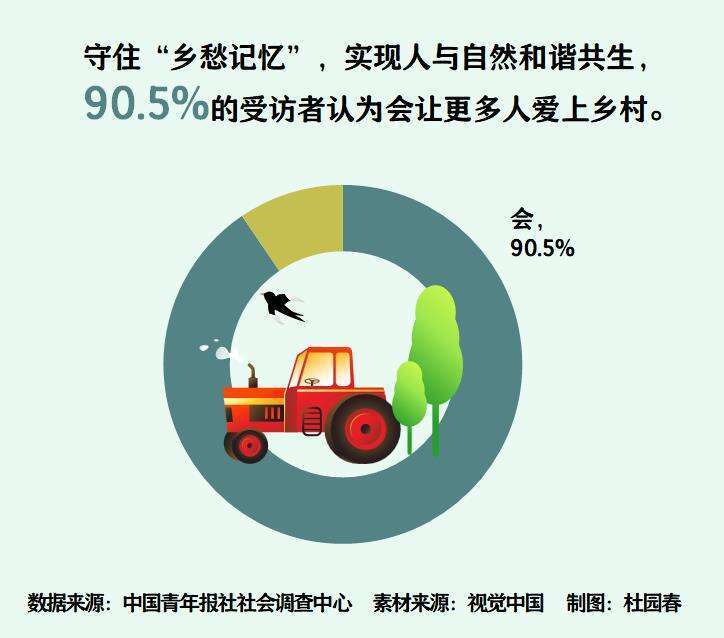 守住“乡愁记忆”,实现人与自然和谐共生,90.5%的受访者认为会让更多人爱上乡村。