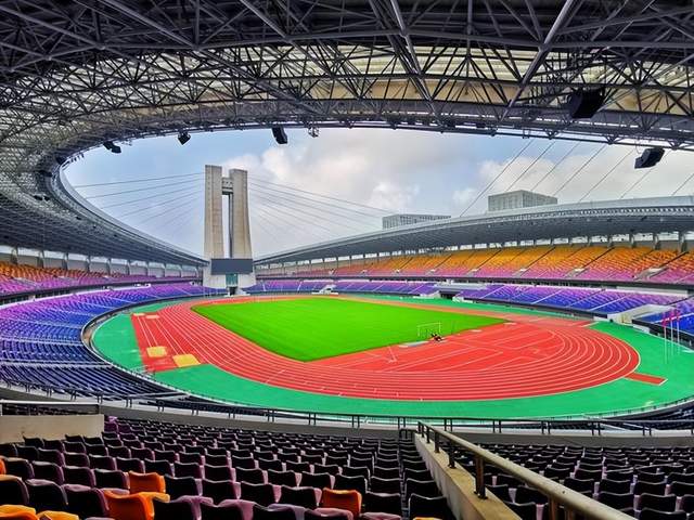 黄龙体育场主体场馆位于黄龙体育中心区域南部,总建筑面积约10.33万㎡,可容纳观众近6万人,属甲级大型体育场,可满足国内外重大比赛要求。