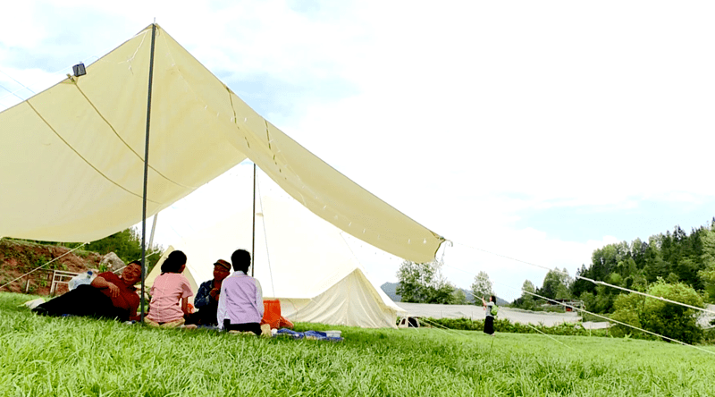 可露营,可品尝农家美食,或席地而坐感受着这里的绿色草坪,或在树荫下高歌一曲,游客们备感惬意。