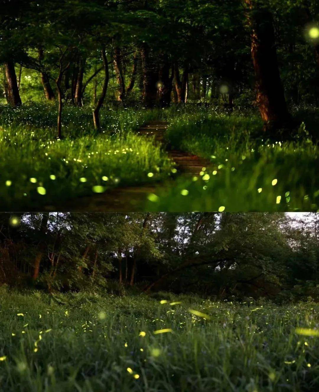 每到春末夏初的夜晚,这里便会化为一片萤火森林,在草丛间,在河岸边,在枝桠下,星星点点的萤火虫汇成了闪烁的光海。