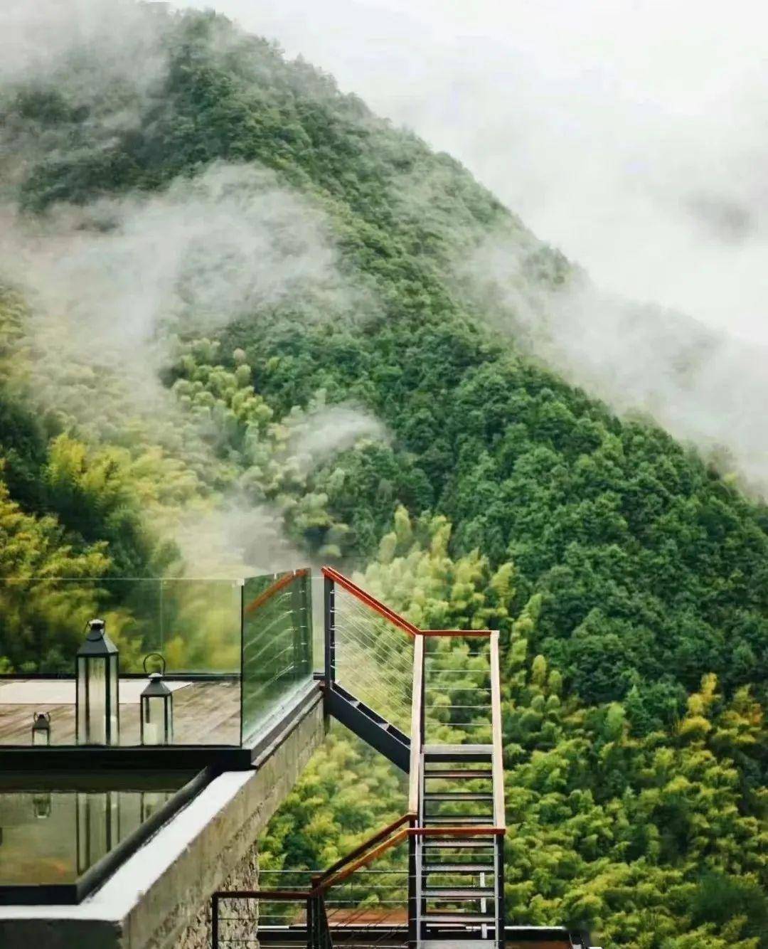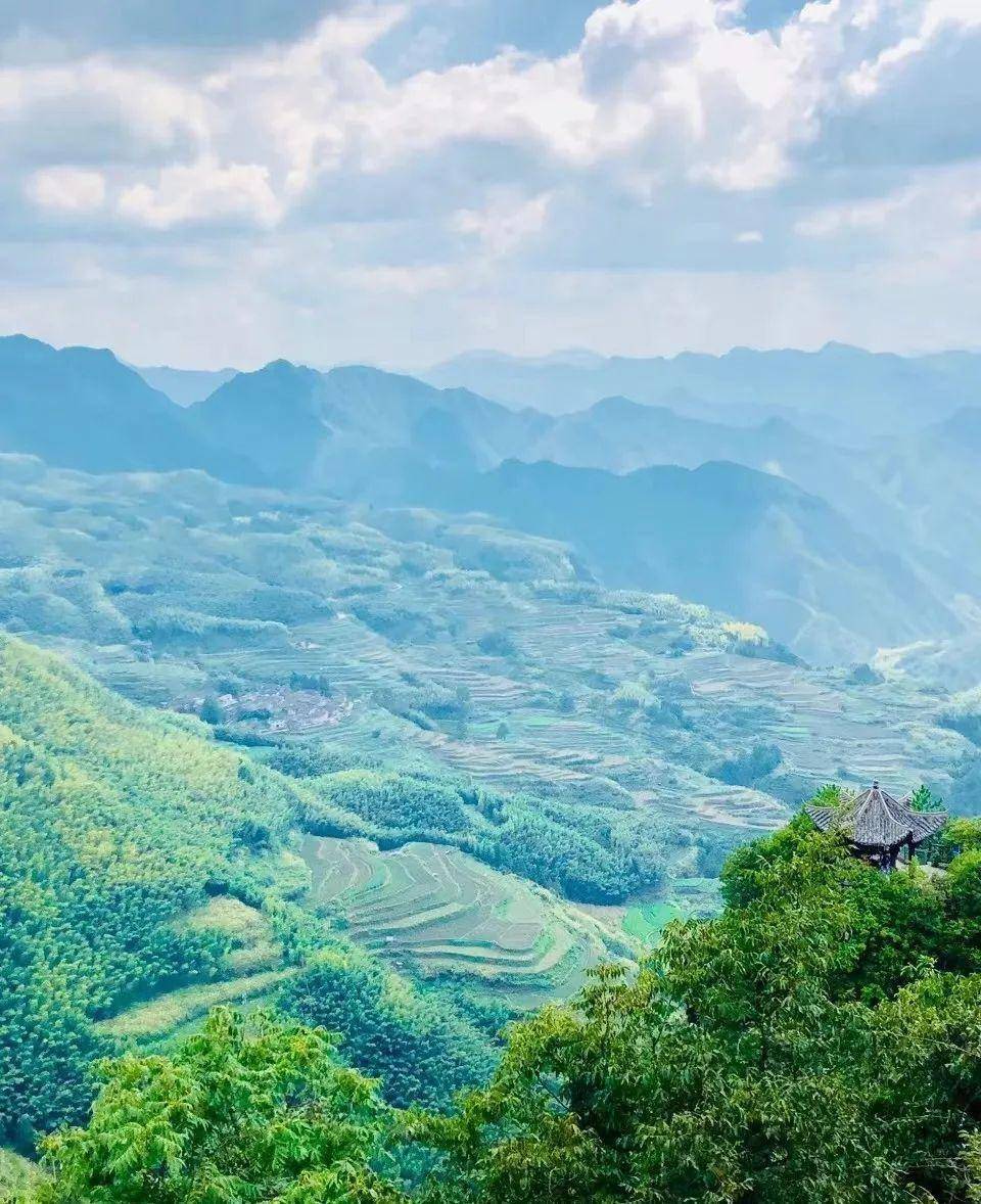 沿着盘山公路蜿蜒而上,入目尽是葱葱茏茏的林木和竹海,时而会有云雾翻涌,时而又是豁然开朗。