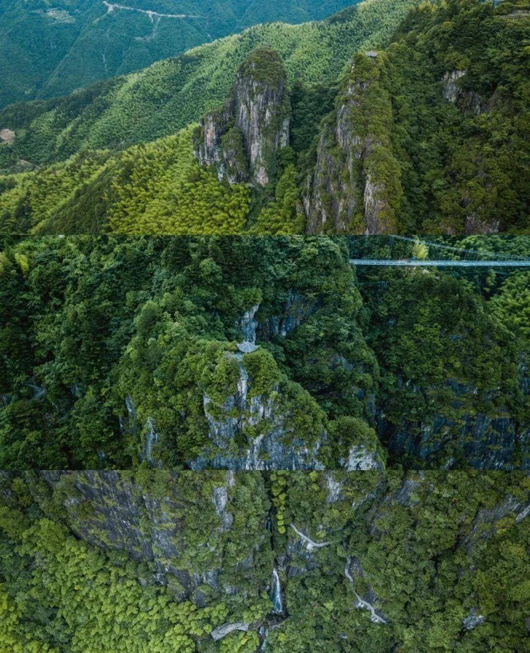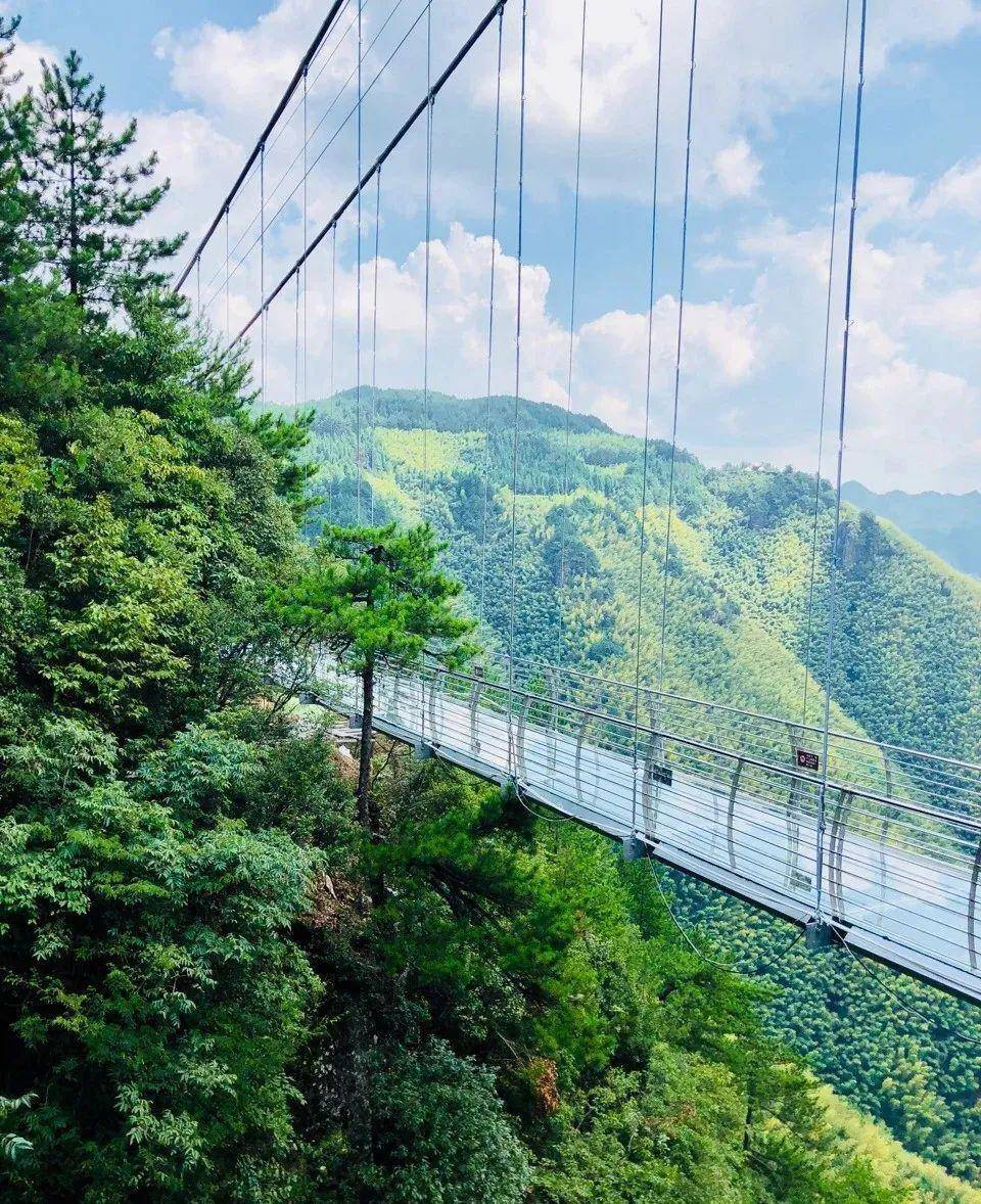 这里还藏着一条5D全透明的“华东第一云端玻璃桥”,就建在悬崖峭壁之间,360°沉浸式观景,行走于桥上,脚下便是一望无际的苍翠林壑,刺激又过瘾!