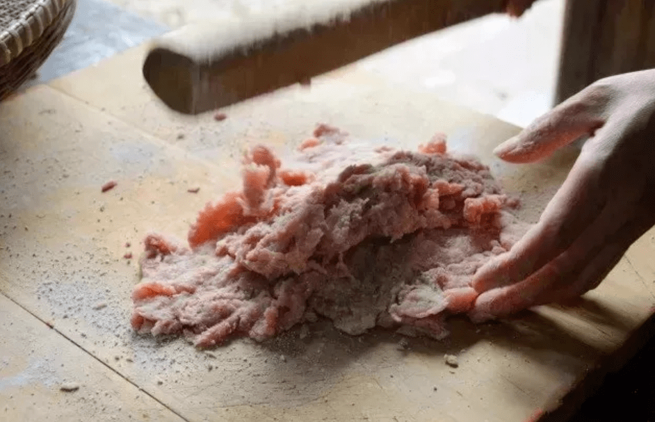 选来上好的猪夹心或后腿瘦肉搅成肉末,混入番薯粉抓匀,再用刀背反复敲打,让肉的纤维与番薯粉完全融合,敲肉羹便成功了大半。