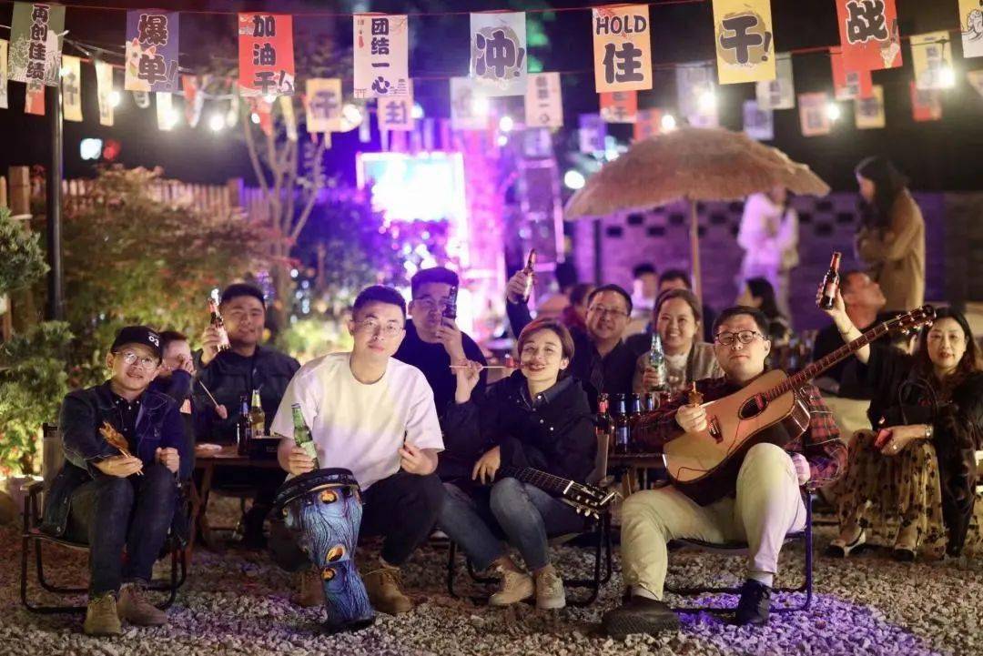 随着夜幕降临,位于山脚下的花涧里夜市流光溢彩,游人如织。一场热气腾腾的户外音乐节吸引了众多音乐迷来到这里,为期四天的音乐节也带动了周边民宿酒店入住率高达100%。