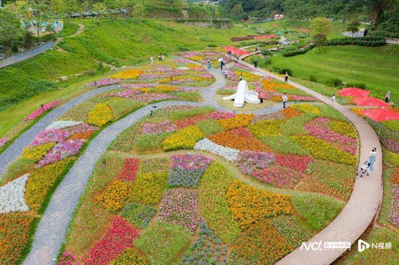 “我们的核心受众是80、90后的宝爸宝妈,他们需要周末和节假日带娃,自己也喜欢拍照‘打卡’。”天人山水大地艺术园首席运营官莫浩介绍,结合核心受众的需求,天人山水也不断让乡村游变得又潮又高端。比如2021年8月开园时便引入了动漫IP,如今随处可见的诺诺兔子观光车也成为该景区的“网红”,社交平台上将这里称为乡村里的童话世界。