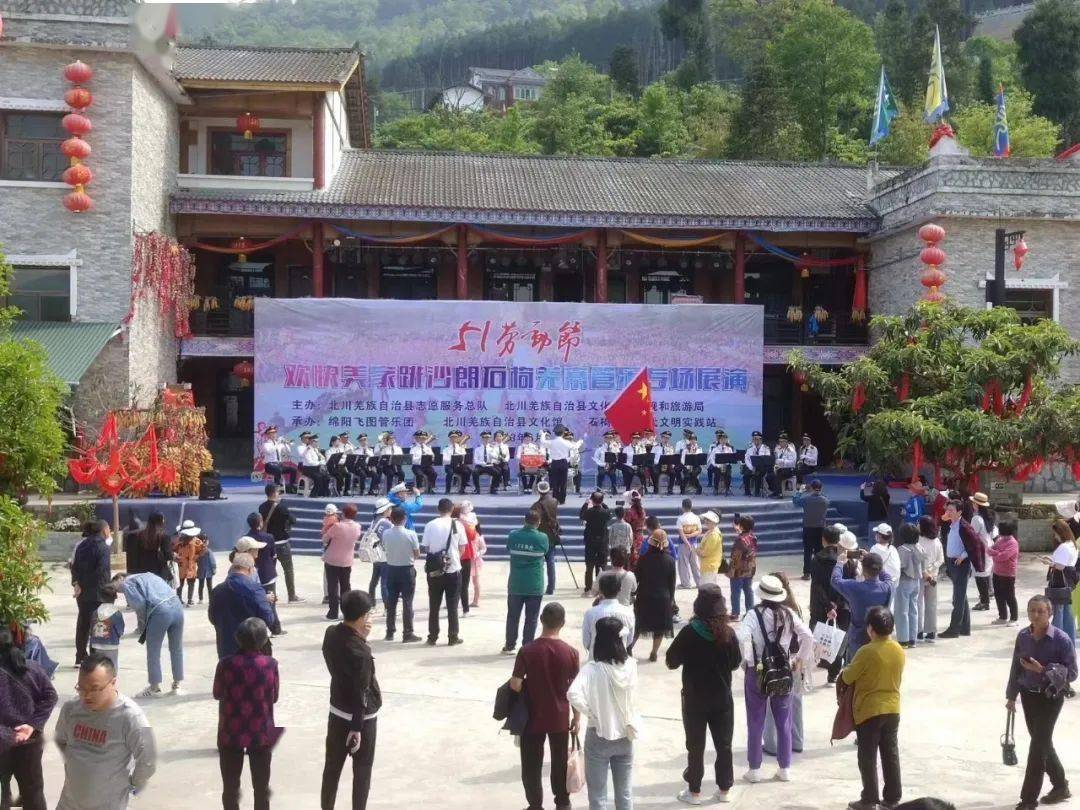 羌城旅游区开展民俗文化歌舞展演,巴拿恰·多巴市集市举行开市仪式《少年禹传奇》,5个IP角色“空降”现场,向游客展示羌城魅力;九皇山景区开展奇妙云朵生活节、星空露营、羌族婚俗展演、篝火晚会、非遗展演活动;寻龙山景区开展羌族沙朗互动、羌族婚俗展演,维斯特开展七彩番茄采摘、多彩亲子活动、“现代小农夫”采摘与温泉之旅活动;飞鸿滑草场以各式各样的萌宠和游客进行互动;石椅村邀请绵阳管乐队进行现场演出、举行唱羌歌跳沙朗传统民俗文化旅游活动,形成了良好的节日氛围,进一步提升了北川知名度。