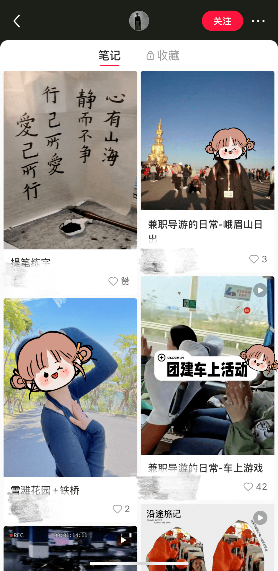 其实我做这件事有个目的,是给自己的小红书笔记提供素材,以前做过文案工作,对于自媒体比较感兴趣。我会在小红书上推荐旅游线路,比如杭州三日游的游览路线,第一天“杭州印象”,大致景点西溪湿地、花港观鱼、小郭庄、茅家埠;第二天“登山徒步”,爬北高峰逛灵隐、法喜寺;第三天“文化之旅”,逛良渚片区。