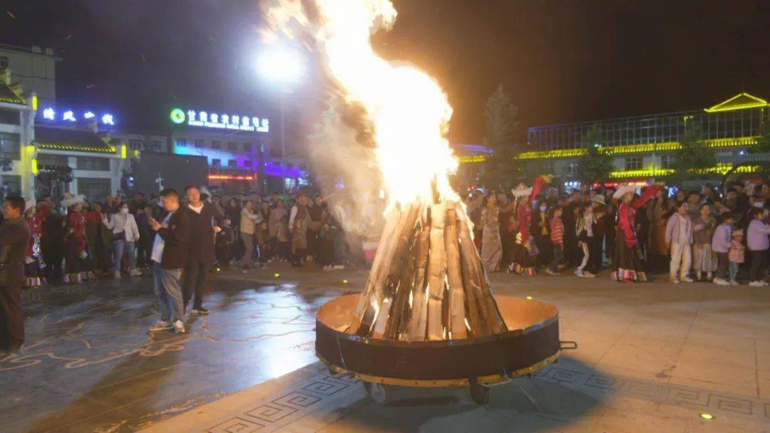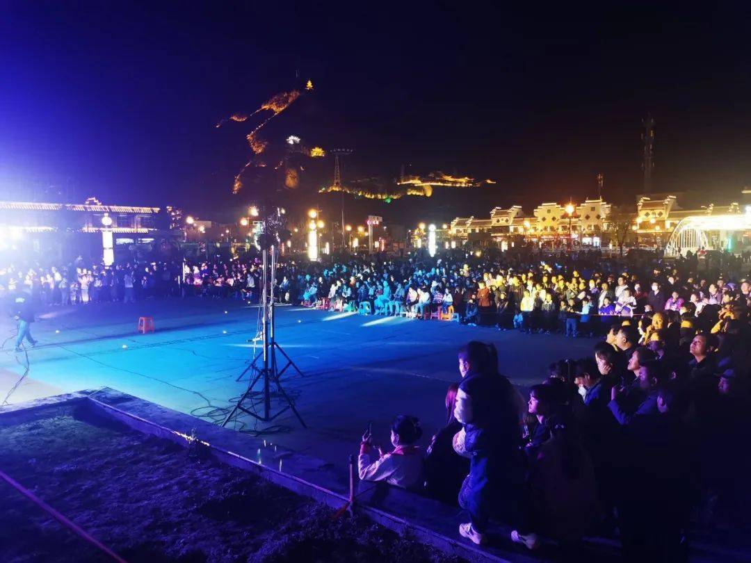 夜幕下,黄龙山上灯光璀璨,冶力关广场人声鼎沸,歌舞声、欢呼声串成一片,来自四面八方的游客乐享沉浸式体验节日的浪漫惬意。
