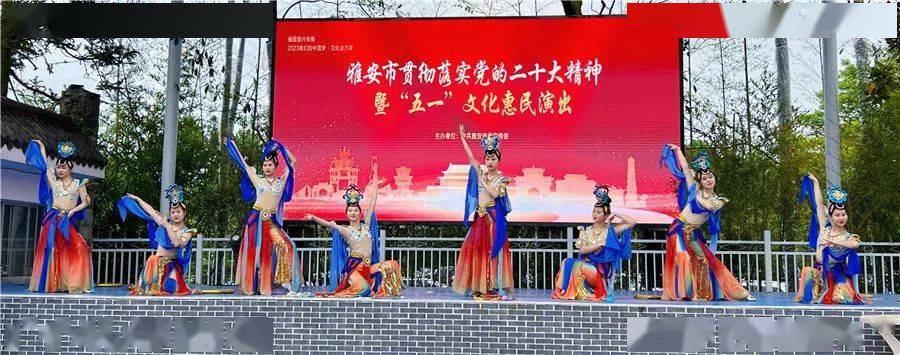 不同时间段,雅安市贯彻落实党的二十大精神暨“五一”文化惠民演出、名山区蒙顶山景区龙行十八式茶技表演、茶品鉴会、音乐会,“活力名山·畅游万古”,天全县花海渔趣(乡村马拉松),雨城区“印象雅州·古道茶人”民俗演绎、上里古镇“印象雅州·春日上里”等活动轮番上演,热闹不已。