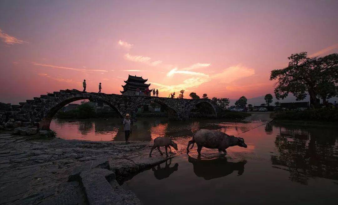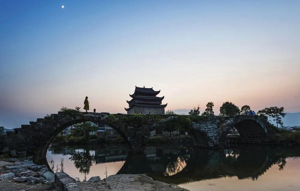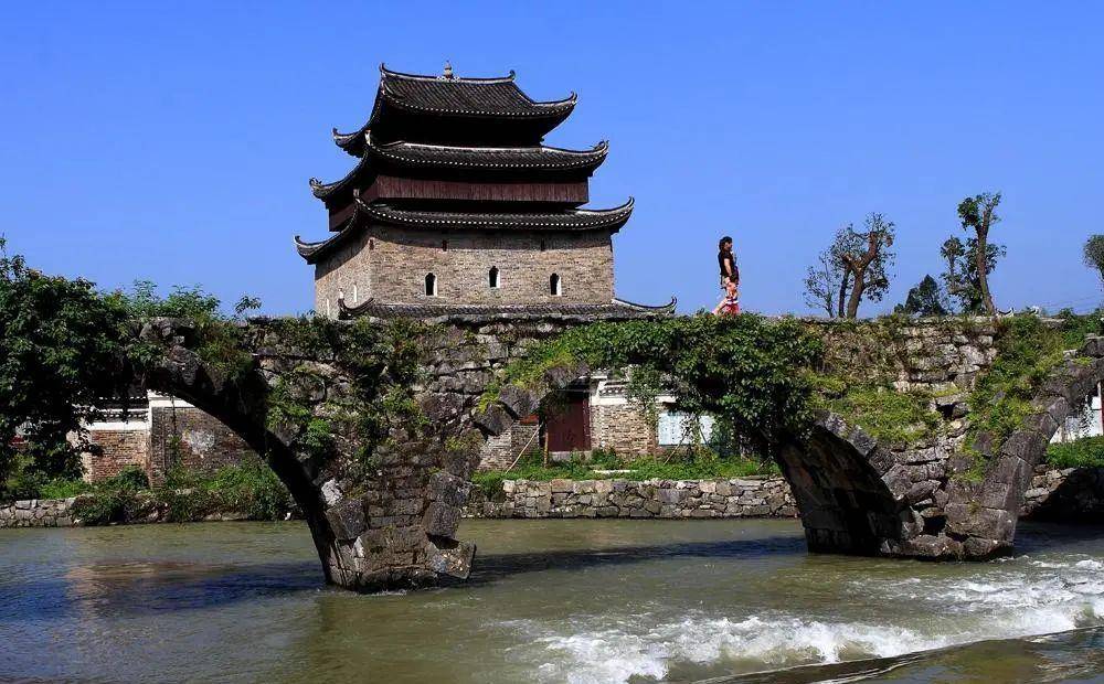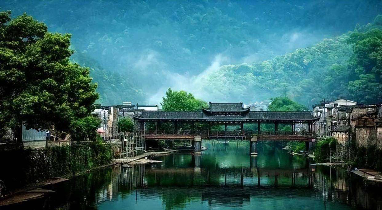 谢沐河穿村而过,古色古香的廊桥横跨两岸。