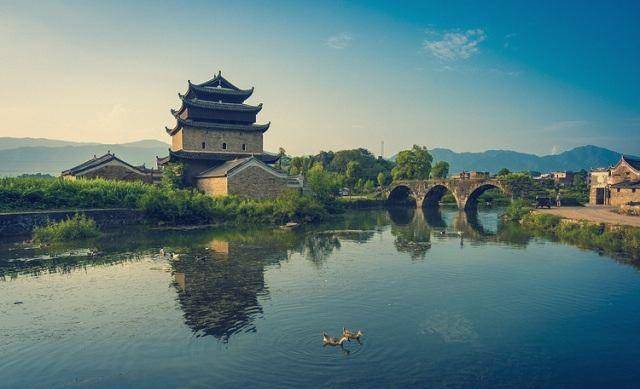 依山傍水的古建筑与周围的山水景色完美相融,无论近观还是远看都是如诗如画。