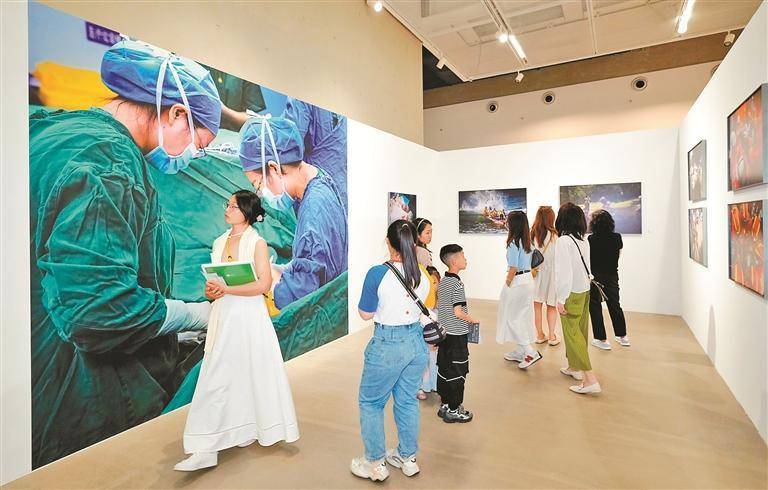 大展同时也吸引了不少从广州、珠海、东莞等地慕名而来的摄影爱好者,专程组团前来观展。其中一位观众表示,他们希望从高水平的作品中了解摄影行业前沿趋势,展出的作品以多元的镜头语言,反映不同国家和地区的城市景观、人文历史、社会生活等内容,“有的作品专注拍摄生活瞬间,有的记录旅途细节,有的呈现时尚人物肖像,有的对准城市建筑,丰富摄影题材和表现手法,呈现出摄影的开阔性视野和文化的兼容并蓄。”