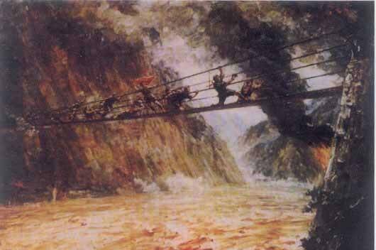 泸定桥位于四川泸定县大渡河之上,是四川入藏的重要通道。泸定桥没有之前,四川入藏都得渡河通过,这就使得来去一趟耗费的时间相当之长,容易延误事情。比如商业运货什么的阻力就很大。