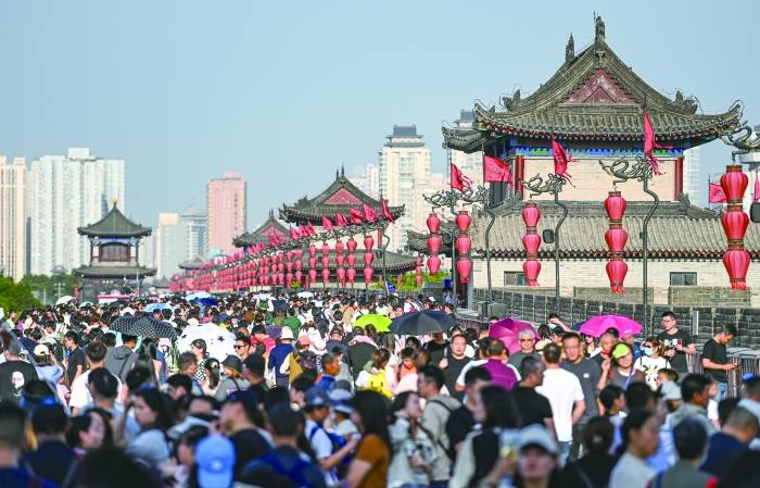 4月30日,游客在西安城墙景区参观游览。新华社 图
