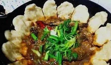 用刚捕到的小鱼,洗净后去鳞剖腹,取出肠胆等内脏,随即用清澈的湖水烧煮。同时和上一些面糊,在锅的中部四周贴上一层簿饼,饼底平水,或入水半寸,火烧水沸、汤汁四溅,故熟后饼底边有一溜子沾有鱼汤。乍一揭去锅盖,面饼沾着鱼鲜,鱼儿带着饼香,鲜香美味扑面而来。
