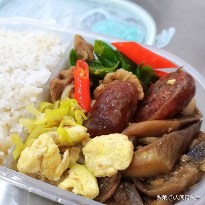 可能是香肠没吃够,所以这一次张思曼又煮了一截香肠,搭配香味十足的炒鸡蛋,,还有辣椒炒肉和茄子,这顿饭有两荤两素,比之前的一荤两素要多一道菜,真是幸福感爆棚。还有这个荷兰豆炒肉搭配清炒豆角,再来几块香肠,这样一顿饭总花费不到十元,却能收获更多快乐。